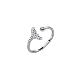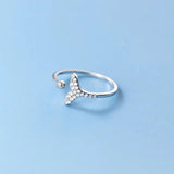 - Motif: One end of the ring features a detailed whale tail shape, which is the focal point of the design. The whale tail is adorned with small, clear gemstones, adding a touch of sparkle.